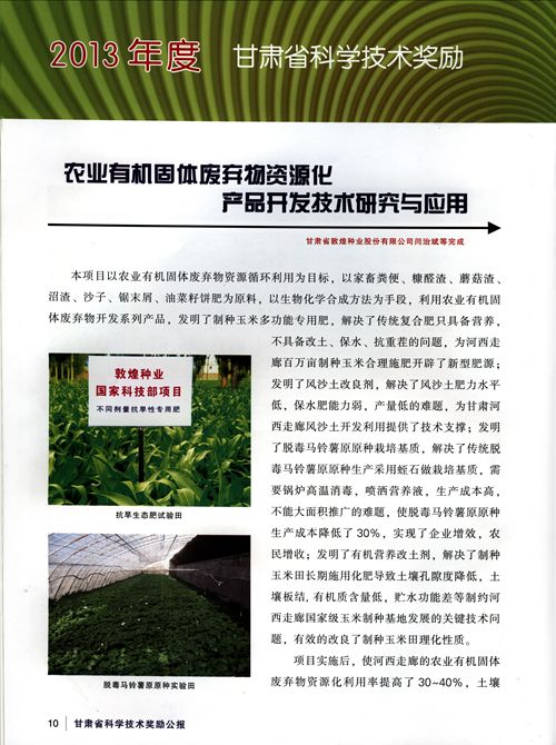 “農(nóng)業(yè)有機(jī)固體廢棄物資源化產(chǎn)品開發(fā)技術(shù)研究與應(yīng)用”喜獲甘肅省技術(shù)發(fā)明一等獎(jiǎng)