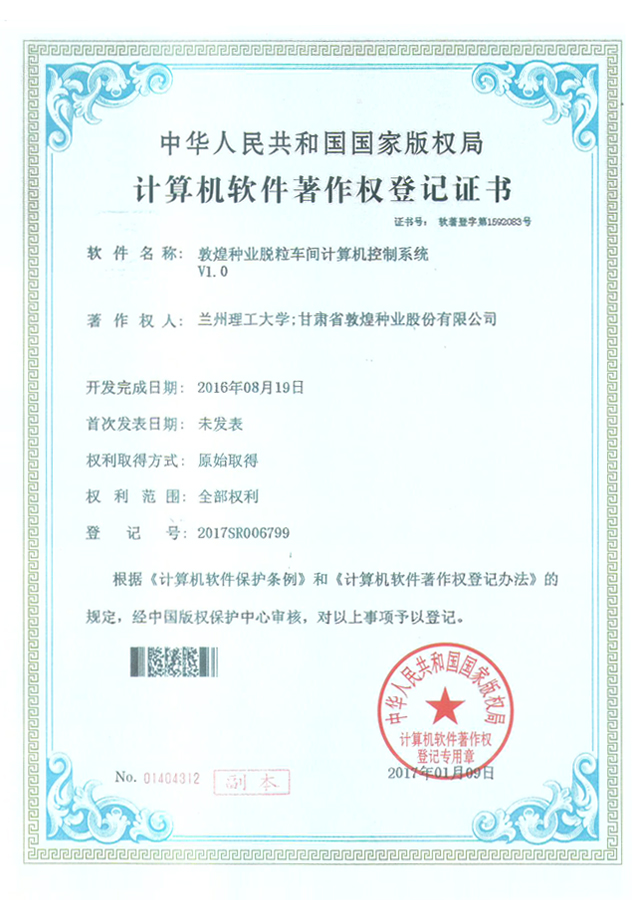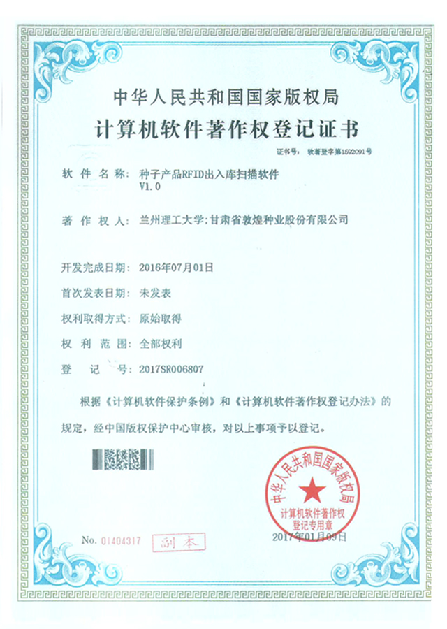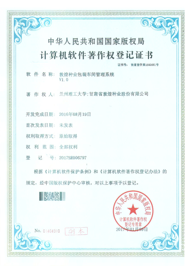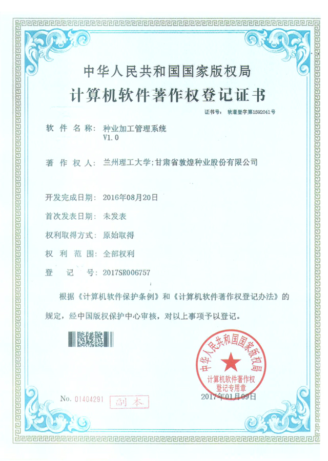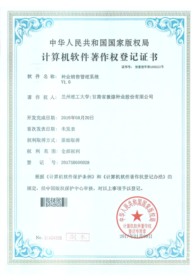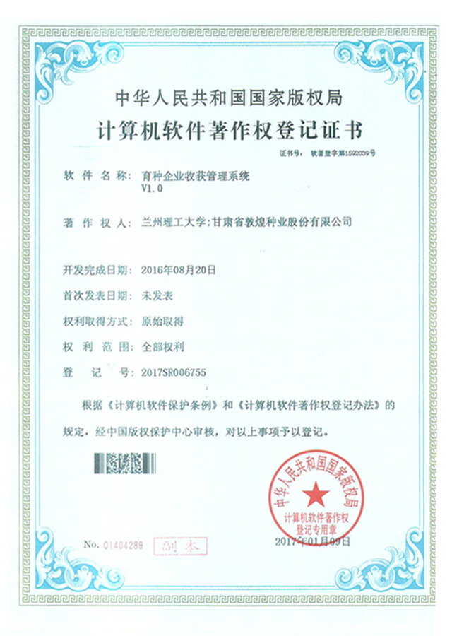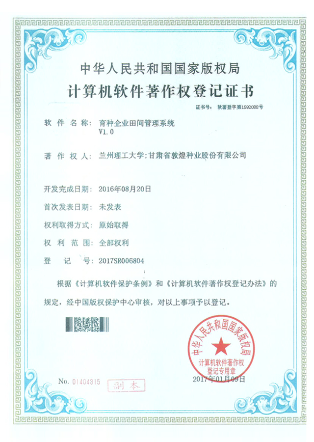 當前位置:敦煌種業(yè)|DHSEED / 研發(fā)創(chuàng)新 / 科研成果 / 著作權(quán)